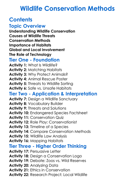 Wildlife Conservation Methods Worksheet Activity Booklet