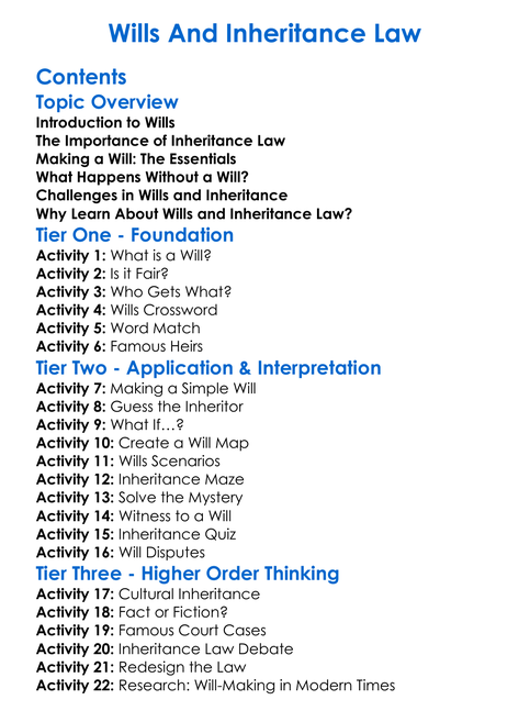 Wills And Inheritance Law Worksheet Activity Booklet