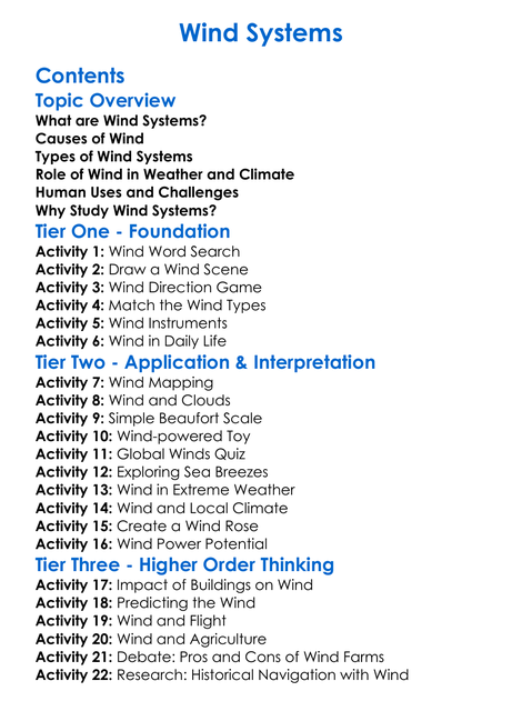 Wind Systems Worksheet Activity Booklet
