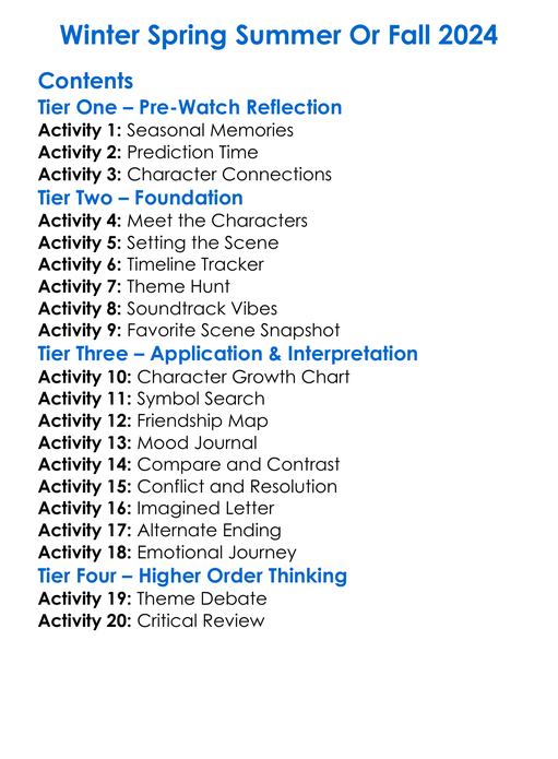 Winter Spring Summer Or Fall 2024 Worksheet Activity Booklet