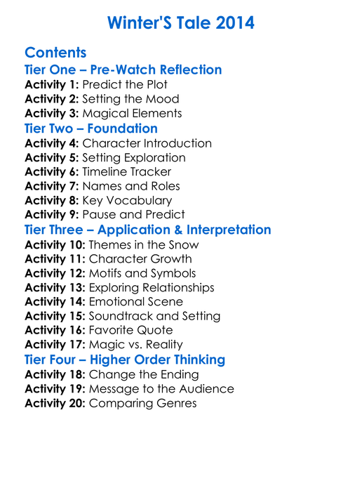 Winters Tale 2014 Worksheet Activity Booklet