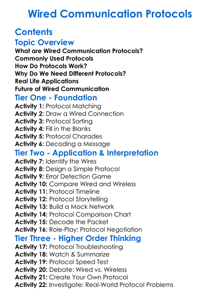 Wired Communication Protocols Worksheet Activity Booklet