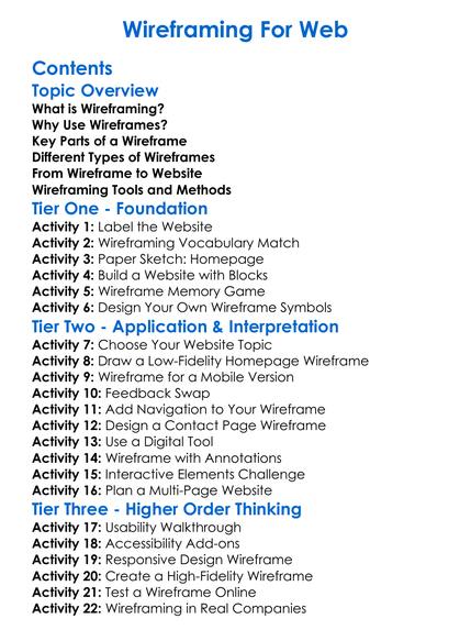 Wireframing For Web Worksheet Activity Booklet