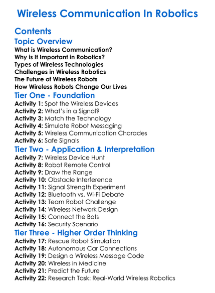 Wireless Communication In Robotics Worksheet Activity Booklet