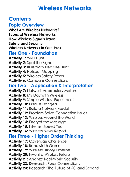 Wireless Networks Worksheet Activity Booklet