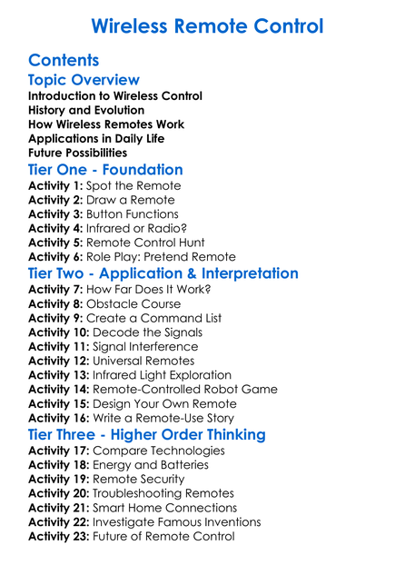 Wireless Remote Control Worksheet Activity Booklet