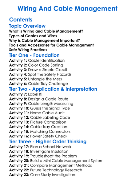 Wiring And Cable Management Worksheet Activity Booklet