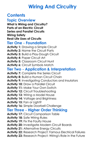 Wiring And Circuitry Worksheet Activity Booklet
