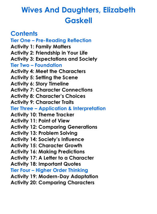 Wives And Daughters Elizabeth Gaskell Worksheet Activity Booklet
