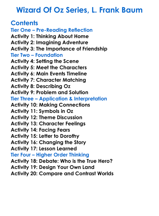 Wizard Of Oz Series L Frank Baum Worksheet Activity Booklet