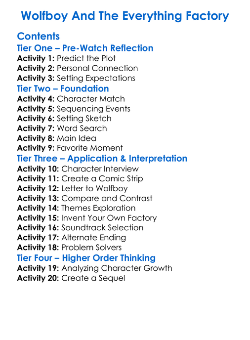 Wolfboy And The Everything Factory Worksheet Activity Booklet