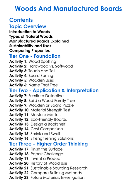 Woods And Manufactured Boards Worksheet Activity Booklet
