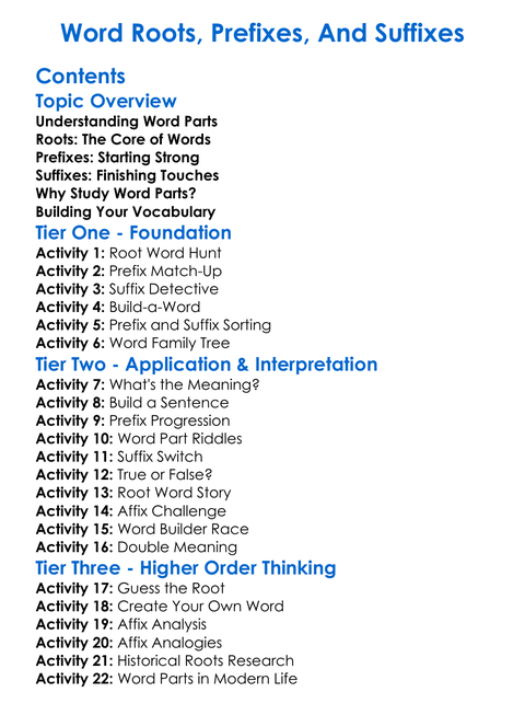 Word Roots Prefixes And Suffixes Worksheet Activity Booklet