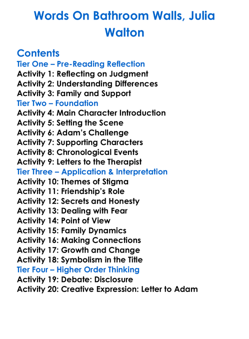 Words On Bathroom Walls Julia Walton Worksheet Activity Booklet