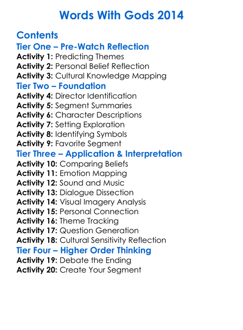 Words With Gods 2014 Worksheet Activity Booklet