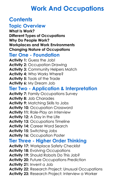 Work And Occupations Worksheet Activity Booklet