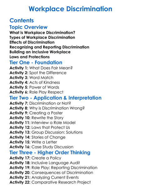 Workplace Discrimination Worksheet Activity Booklet