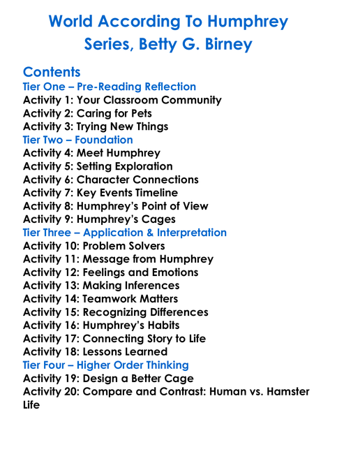 World According To Humphrey Series Betty G Birney Worksheet Activity Booklet