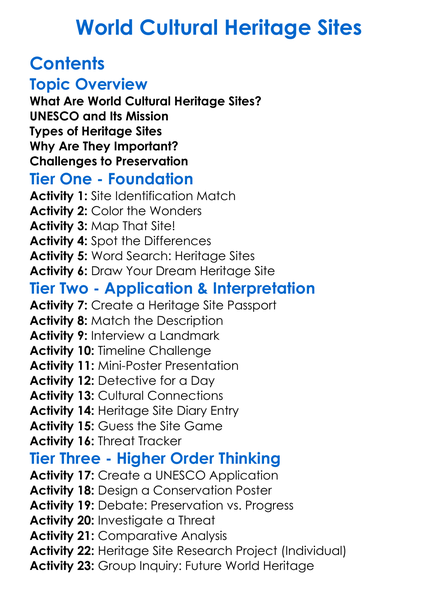 World Cultural Heritage Sites Worksheet Activity Booklet