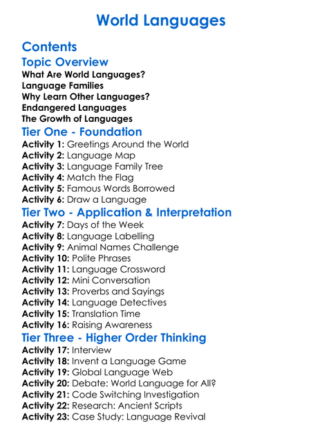 World Languages Worksheet Activity Booklet