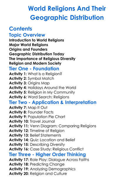 World Religions And Their Geographic Distribution Worksheet Activity Booklet