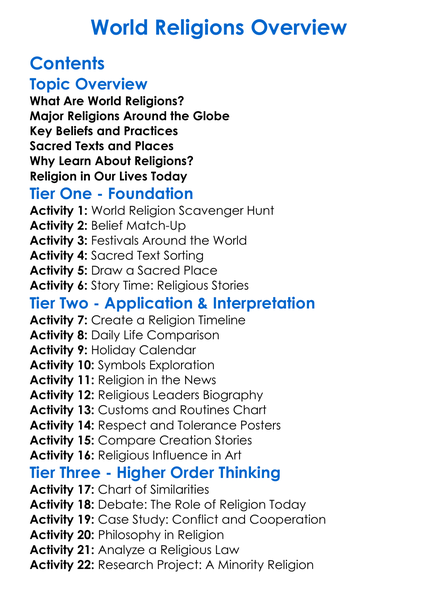 World Religions Overview Worksheet Activity Booklet