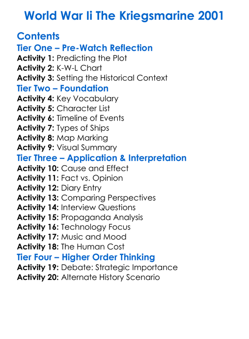 World War Ii The Kriegsmarine 2001 Worksheet Activity Booklet