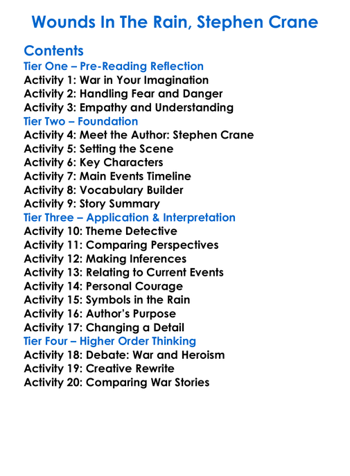 Wounds In The Rain Stephen Crane Worksheet Activity Booklet