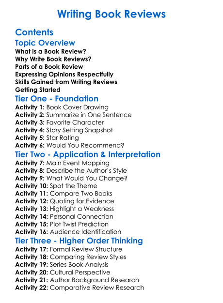 Writing Book Reviews Worksheet Activity Booklet