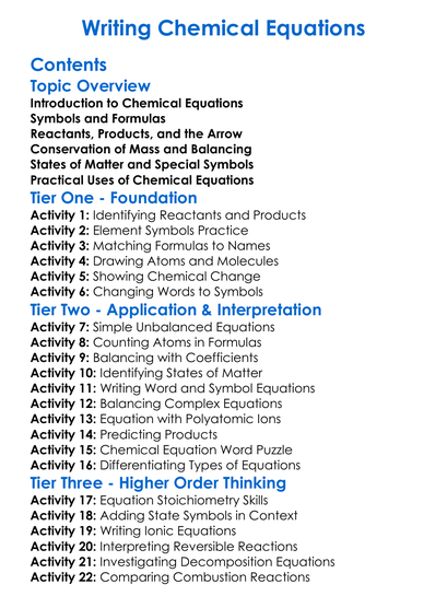 Writing Chemical Equations Worksheet Activity Booklet