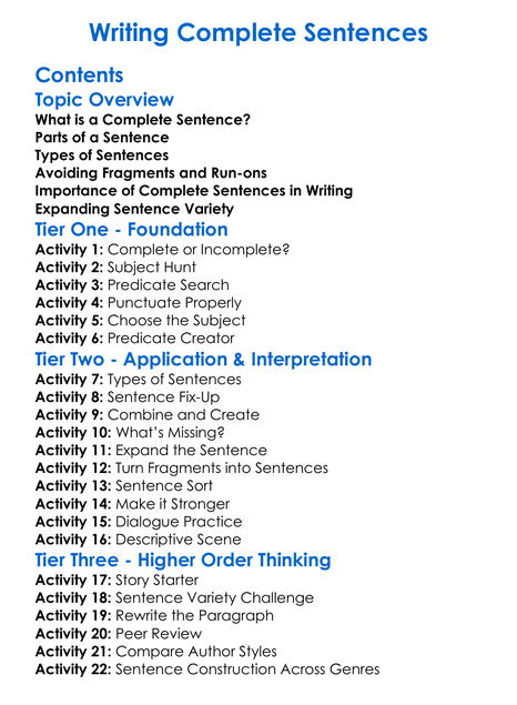 Writing Complete Sentences Worksheet Activity Booklet