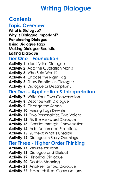 Writing Dialogue Worksheet Activity Booklet