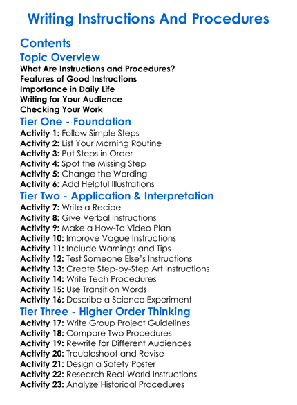 Writing Instructions And Procedures Worksheet Activity Booklet