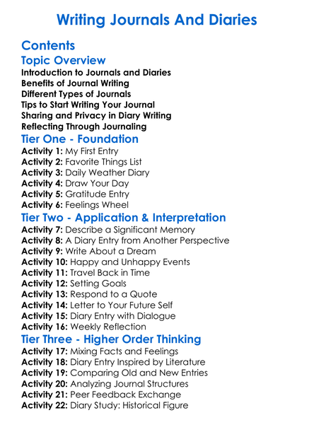 Writing Journals And Diaries Worksheet Activity Booklet