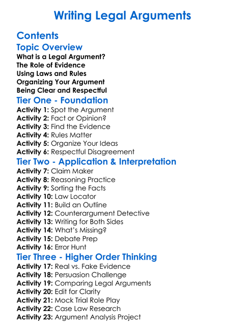 Writing Legal Arguments Worksheet Activity Booklet