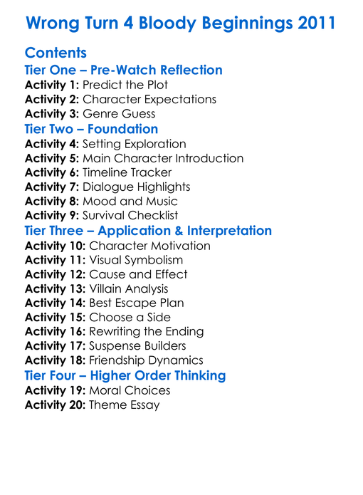 Wrong Turn 4 Bloody Beginnings 2011 Worksheet Activity Booklet