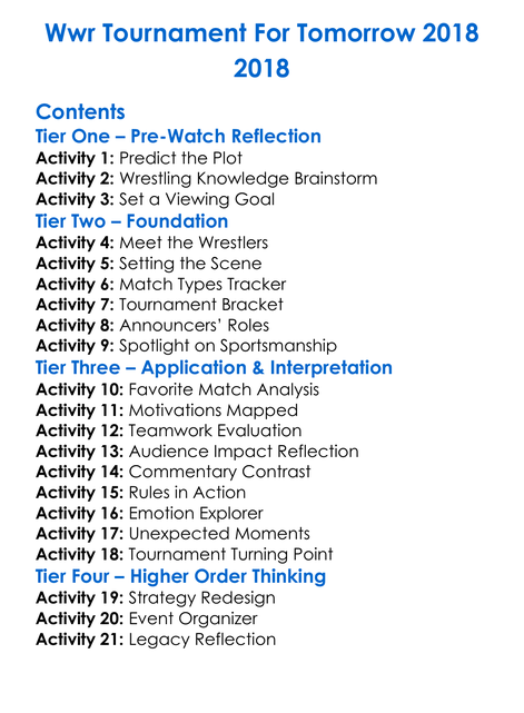 Wwr Tournament For Tomorrow 2018 2018 Worksheet Activity Booklet