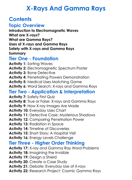 X-Rays And Gamma Rays Worksheet Activity Booklet