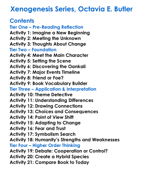 Xenogenesis Series Octavia E Butler Worksheet Activity Booklet
