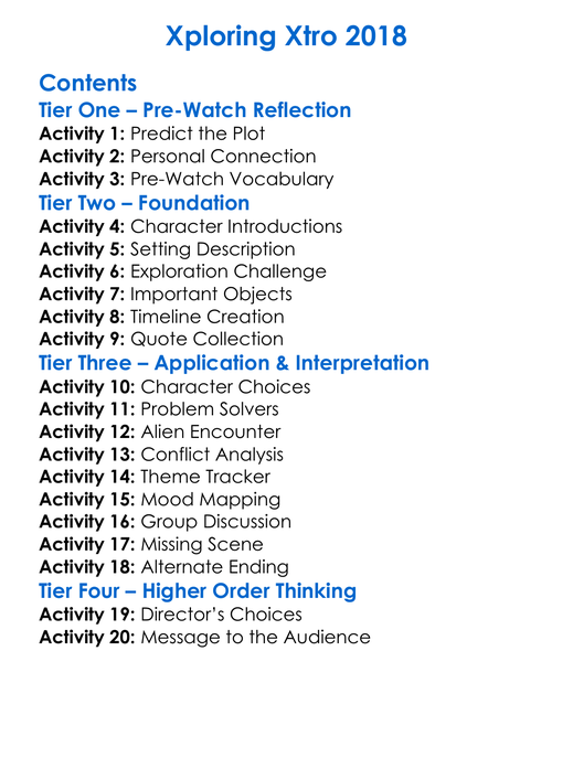Xploring Xtro 2018 Worksheet Activity Booklet