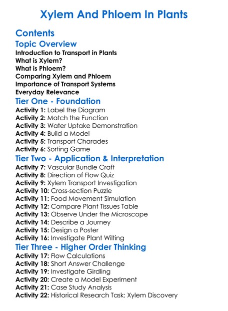 Xylem And Phloem In Plants Worksheet Activity Booklet