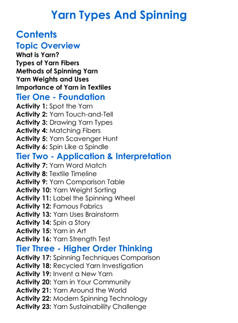 Yarn Types And Spinning Worksheet Activity Booklet