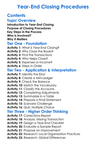 Year-End Closing Procedures Worksheet Activity Booklet