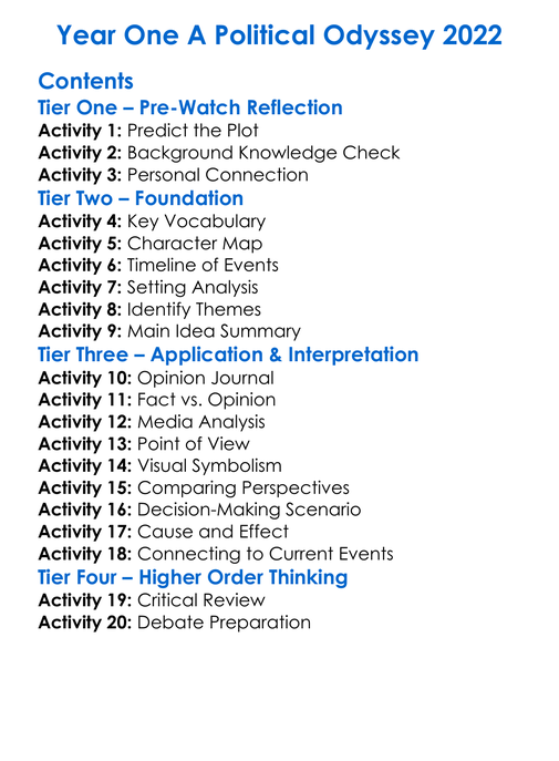Year One A Political Odyssey 2022 Worksheet Activity Booklet