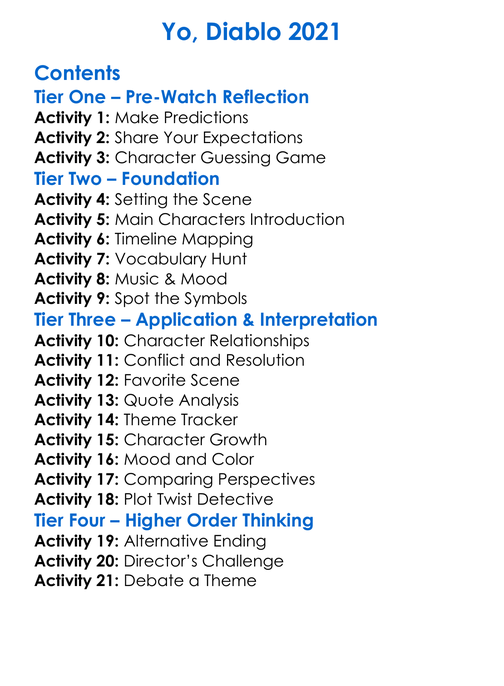 Yo Diablo 2021 Worksheet Activity Booklet