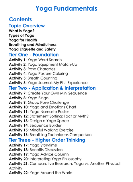 Yoga Fundamentals Worksheet Activity Booklet