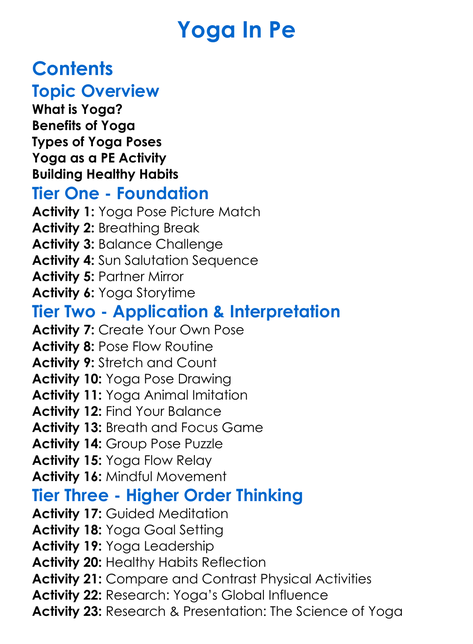 Yoga In Pe Worksheet Activity Booklet