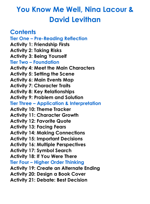 You Know Me Well Nina Lacour David Levithan Worksheet Activity Booklet