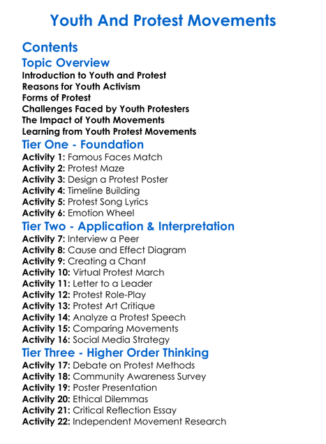 Youth And Protest Movements Worksheet Activity Booklet