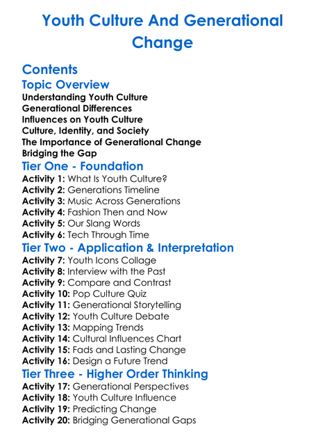 Youth Culture And Generational Change Worksheet Activity Booklet